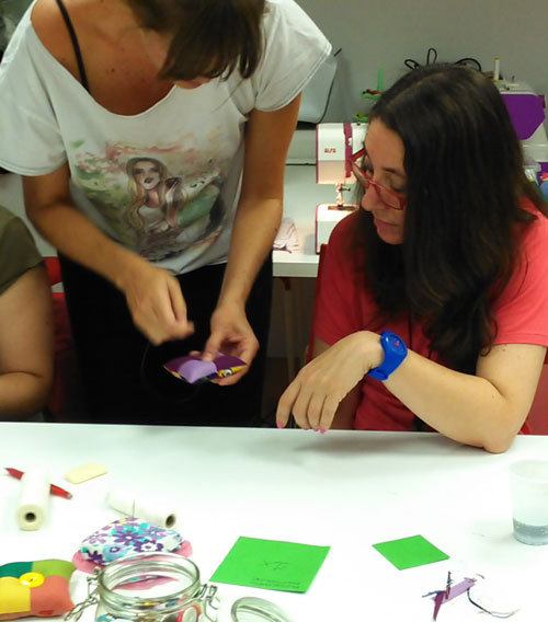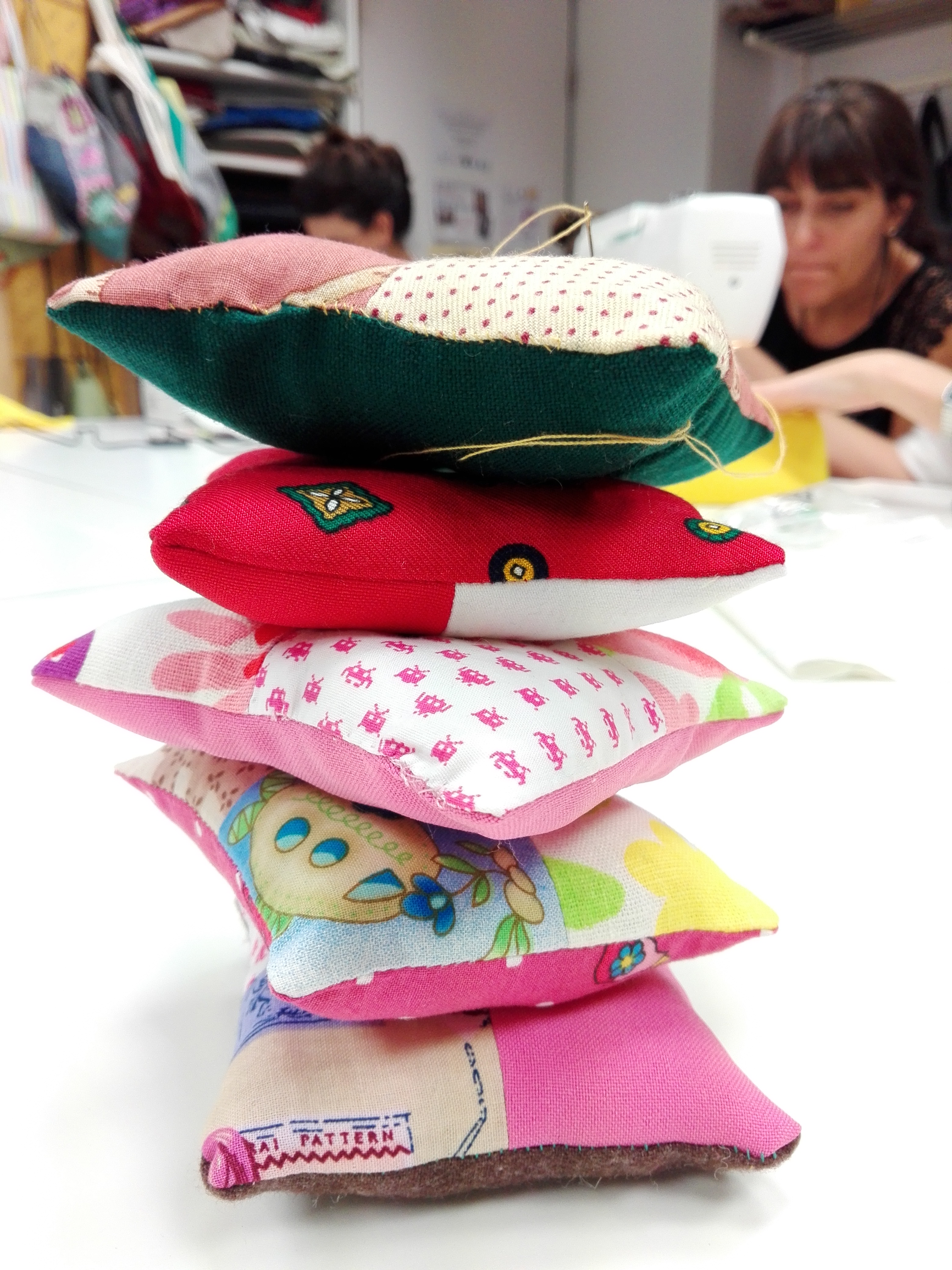 Alfileteros de colores, ejercicio práctico de curso intensivo de coser a maquina nivel 1.